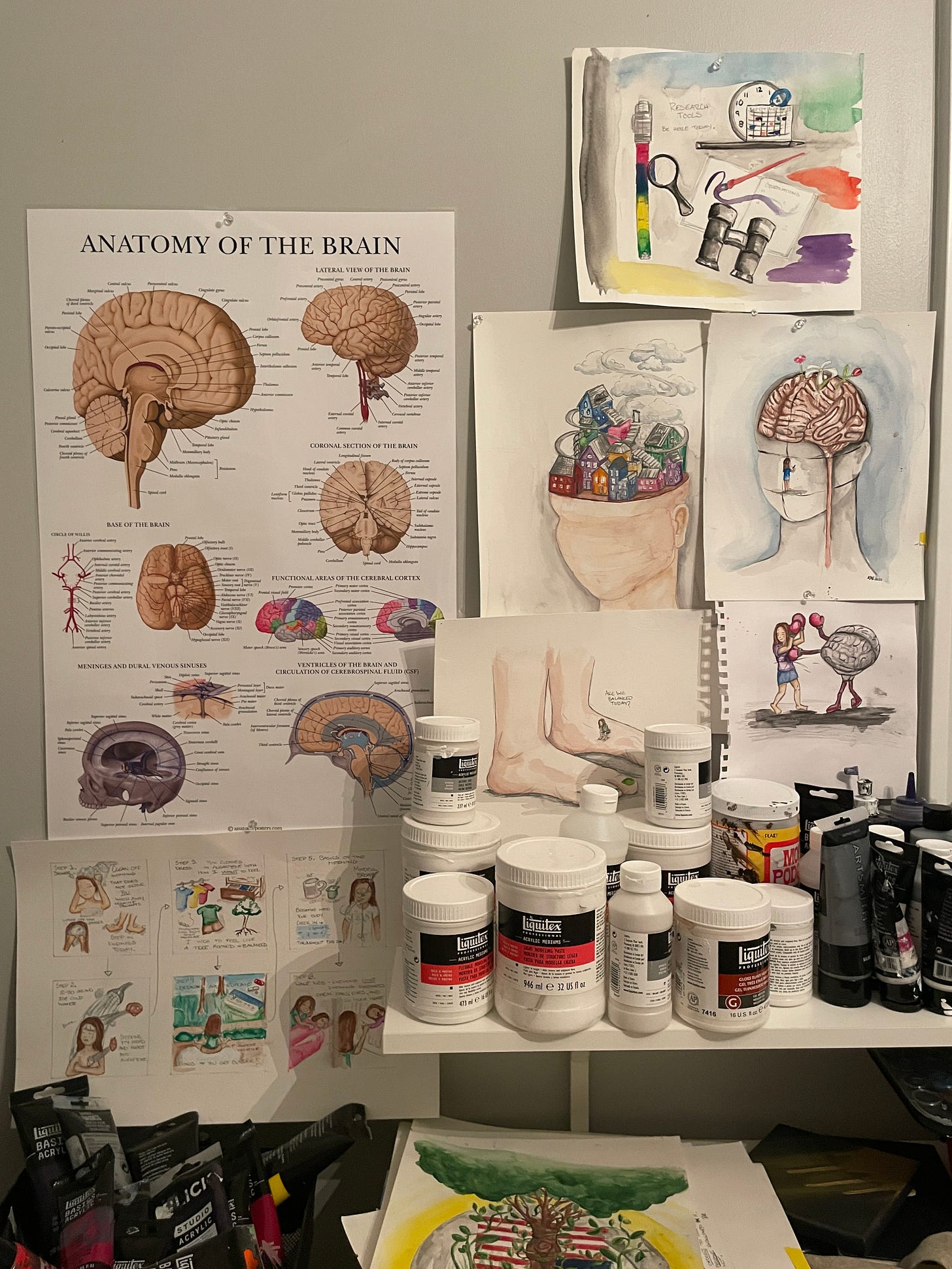 I look back at the sketches and paintings and see the symbolic representation of how disconnected I have been. I have been fighting with my brain, disconnected from my feet. I had been stuck.